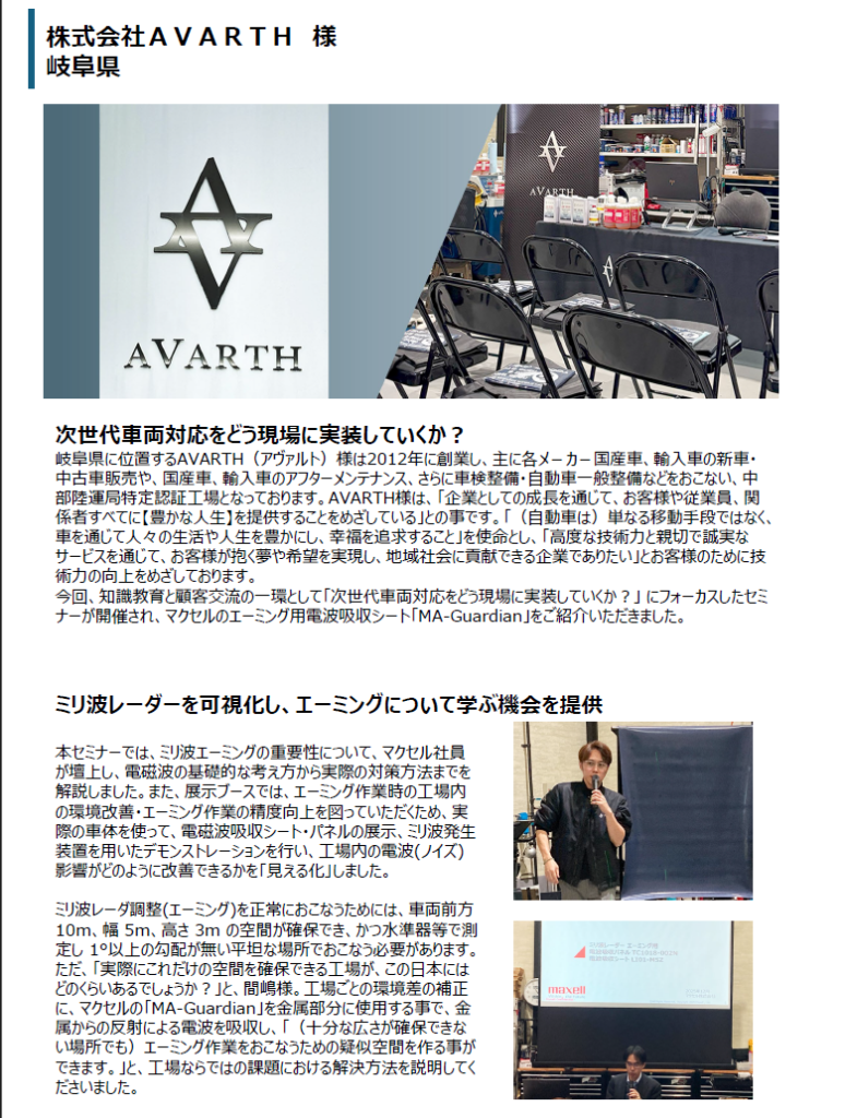 AVARTHは、若手整備士の育成や業界の将来を担う人材の交流活動にも関わっています。